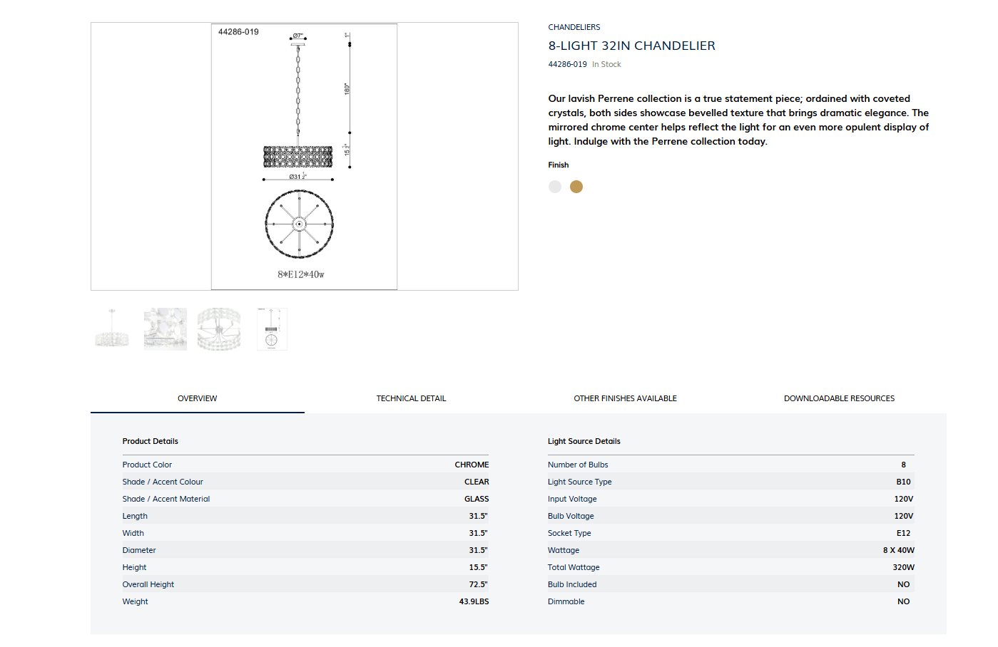 CHADELIER CHROME 8 X40W CAND (E12)