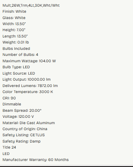 4 encastré led MULT,26W,TRM,4LT,30K,BLANC-BLANC
