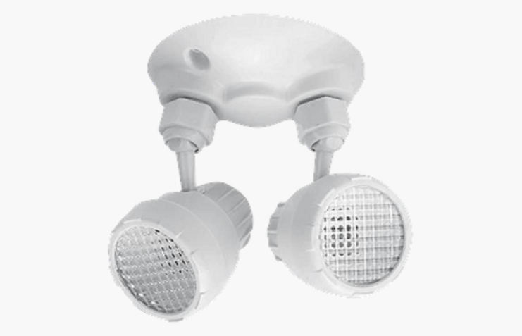 Luminaire DEL de secours - boîtier ABS thermoplastique blanc à deux phares 120/347V batterie de secours avec 2 phares de 2W 90 min.